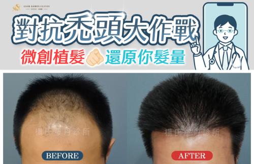 ▲術前/術後對比照,對抗禿頭大作戰,微創植髮還原你應有的髮量