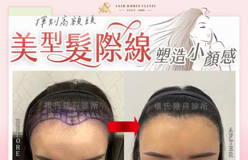 ▲術前/術後對比照,揮別高額頭困擾,美型髮際線塑造自然小顏感