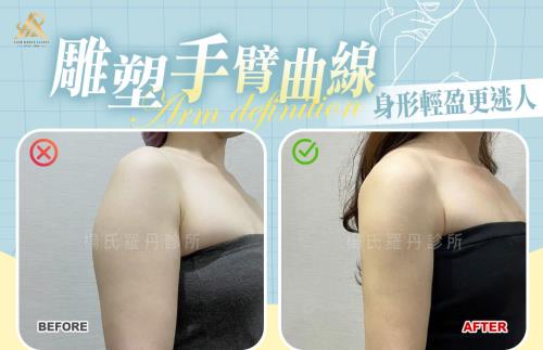 ▲術前/術後對比照,雷射減脂雕塑手臂曲線,讓身形輕盈更迷人