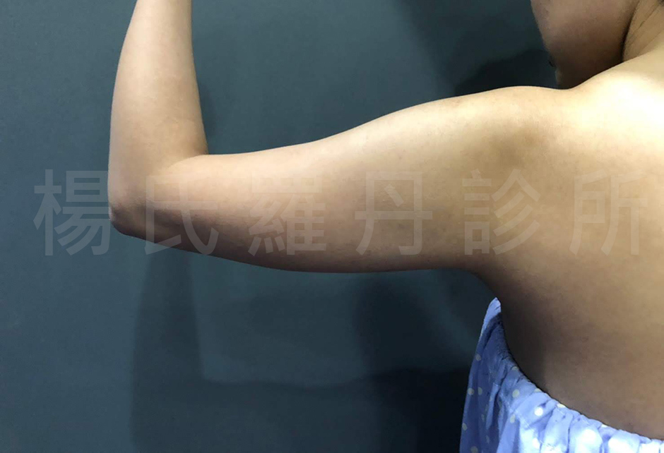 手術過程中,還是會有微微的酸感,但不是痛!恢復期間,前兩周都穿塑身衣..在天氣熱的情況下真的蠻辛苦的。待手臂的瘀青全退去了,每天都有稍微按摩手臂,就是希望能快快消腫(對了!! 診所官網有指導如何自行按摩哦~),在照護傷口上雖然有些費心,但心想著撐過了一切,手臂就可以見人,那也都值得了。